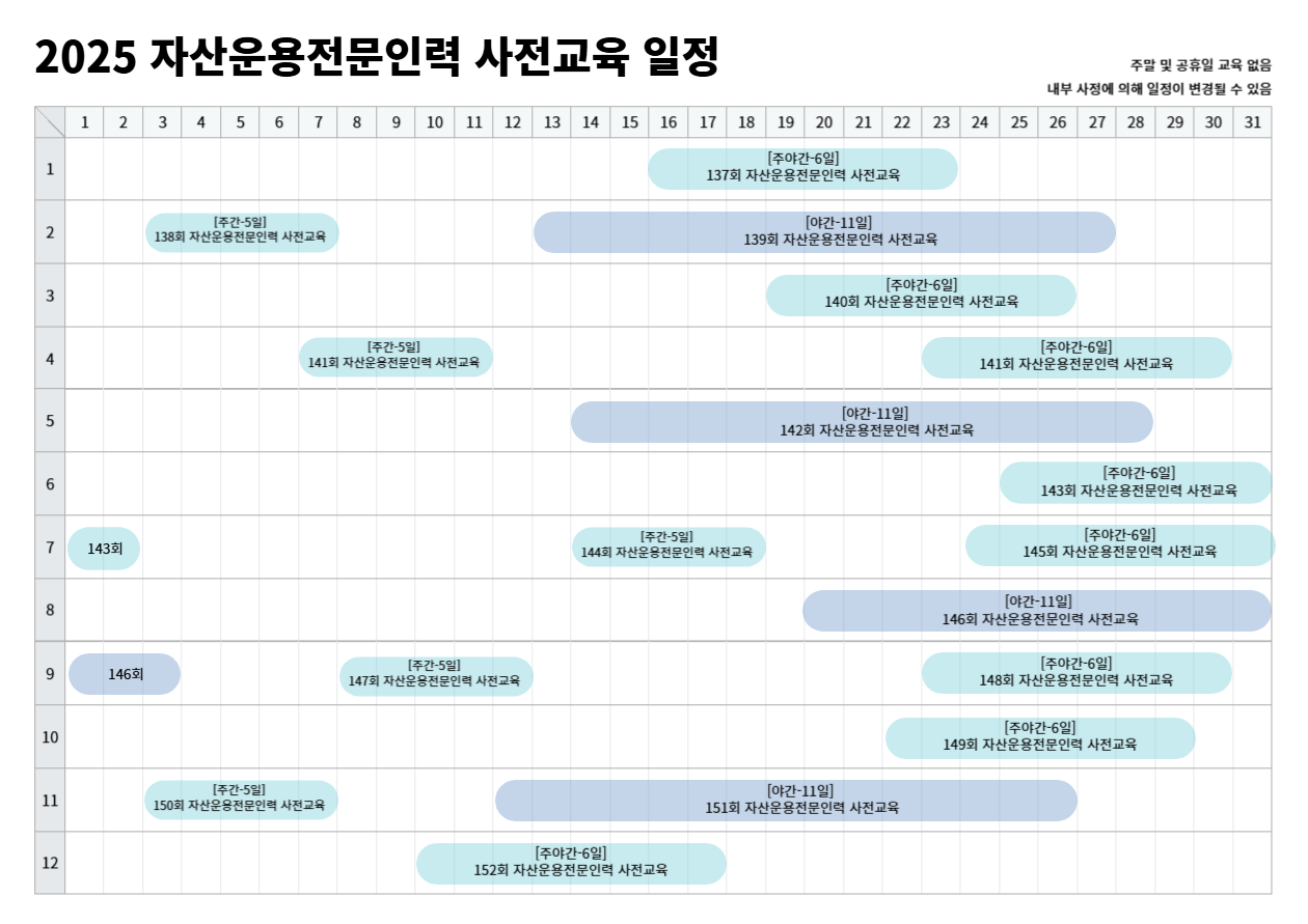 2025년 자산운용 전문인력 사전교육 일정 안내