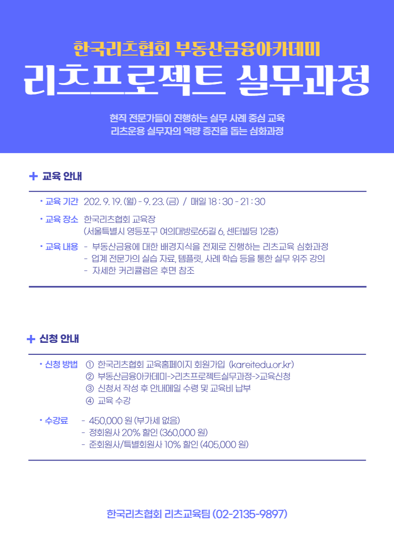 부동산금융아카데미 – 리츠 전문가 교육과정